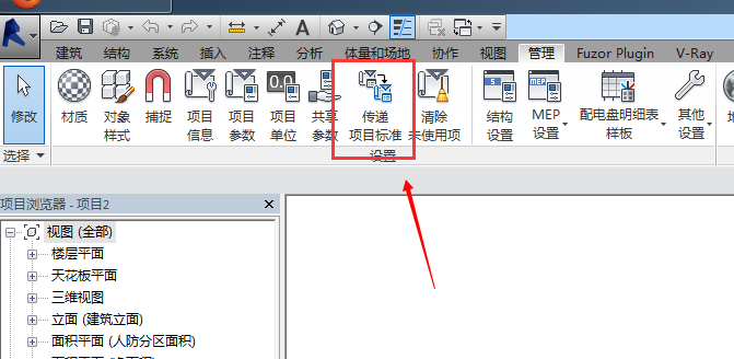 3、你也可以直接利用“传递项目标准”将别的项目的族一次性拷贝到新项目