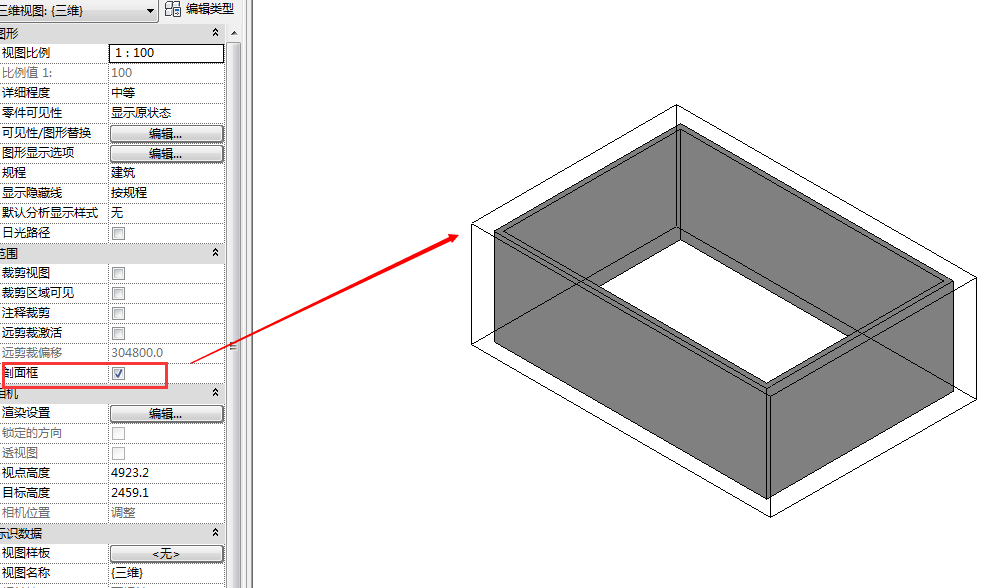 若是指剖面框 ,勾选视图实例属性的剖面框