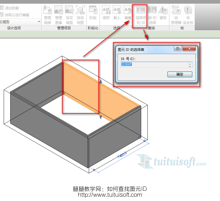 2、如何根据ID查找图元,若你知道图元的ID,你可以通过,管理选项卡的“按ID选择”