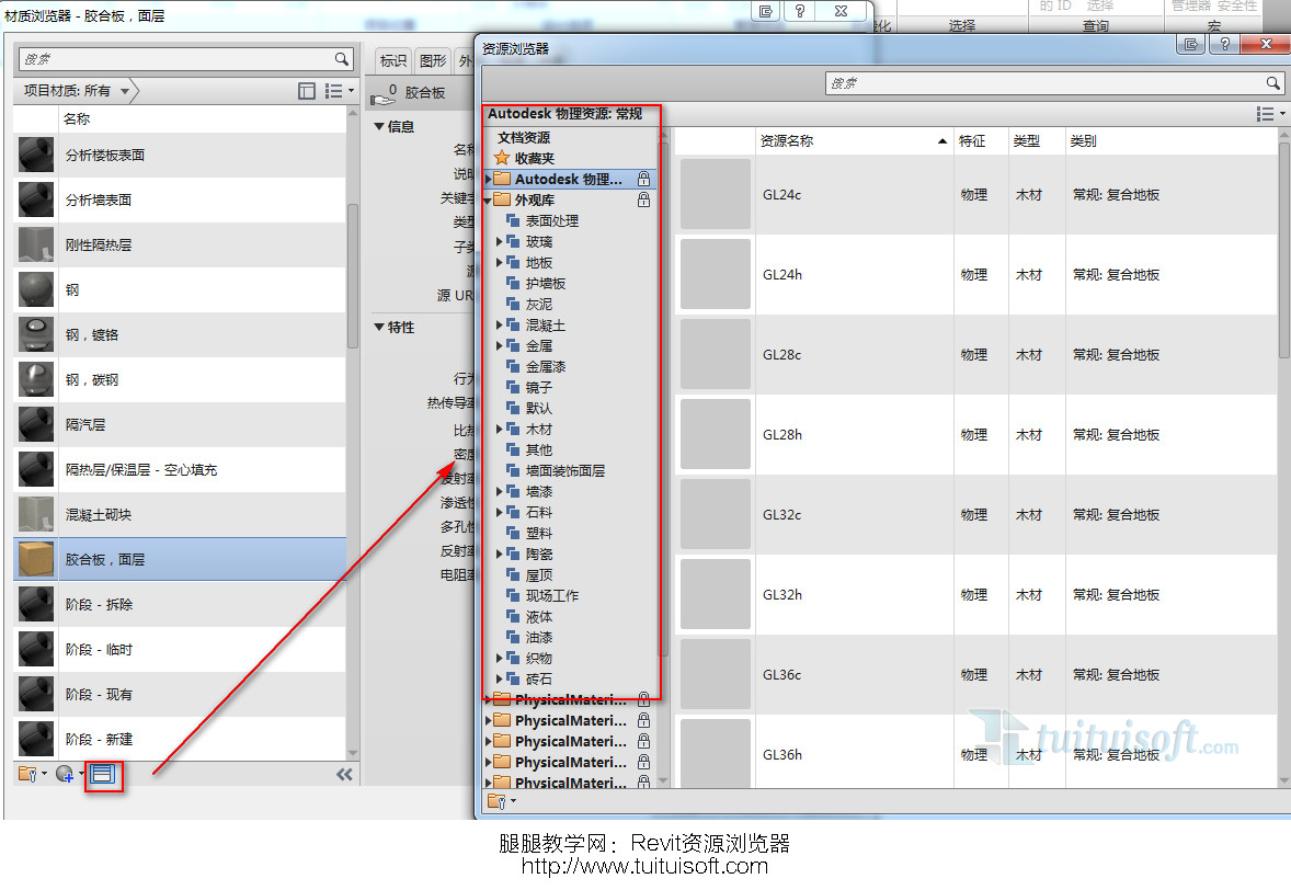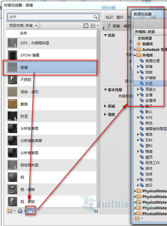 3、更改材质属性:通过资源浏览器选择需要的外观和物理资源