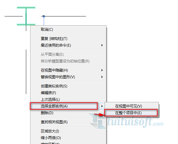 可以选择柱子,右键,选择“选择全部实例”