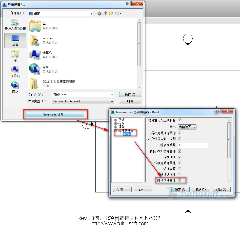 revit链接文件导出成NW,怎么设置才会出现链接文件?