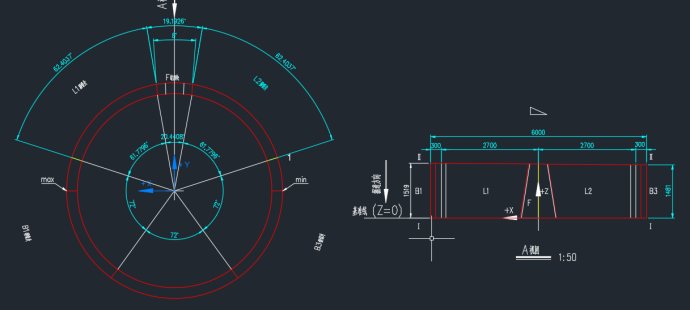 网友给的施工图里面关于管片弧线中心角是如何定出来的,左转弯和右转弯封顶块还不对称,我不是很明白。