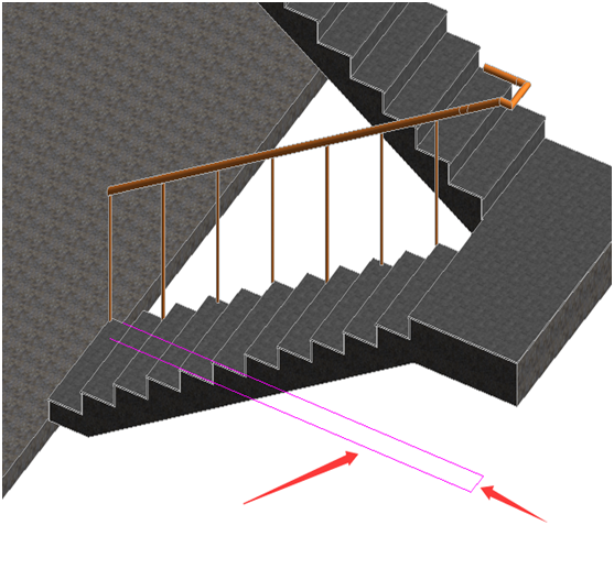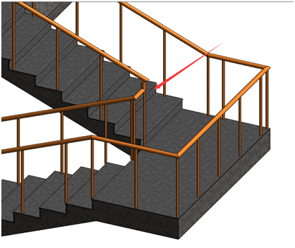 编辑栏杆,将终点支柱的族替换为楼梯转角族,并对位置进行修改。