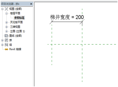 1、首先需要新建一个公制栏杆-支柱族。在视图中转到参照标高,做一条参照平面,并添加一个梯井宽度参数。