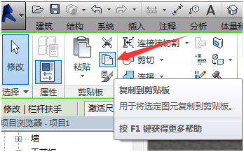 选中一层内侧和外侧的栏杆,在修改选项卡中点击复制,在点击粘贴,选择与选定的标高对齐,将栏杆复制到需要的楼层上。