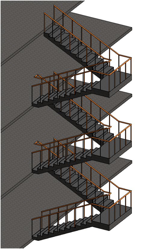 如果顶层的栏杆不需要进行转角处理,只需要选中栏杆,将栏杆替换成外侧的栏杆类型就可以了。最终完成效果图如下: