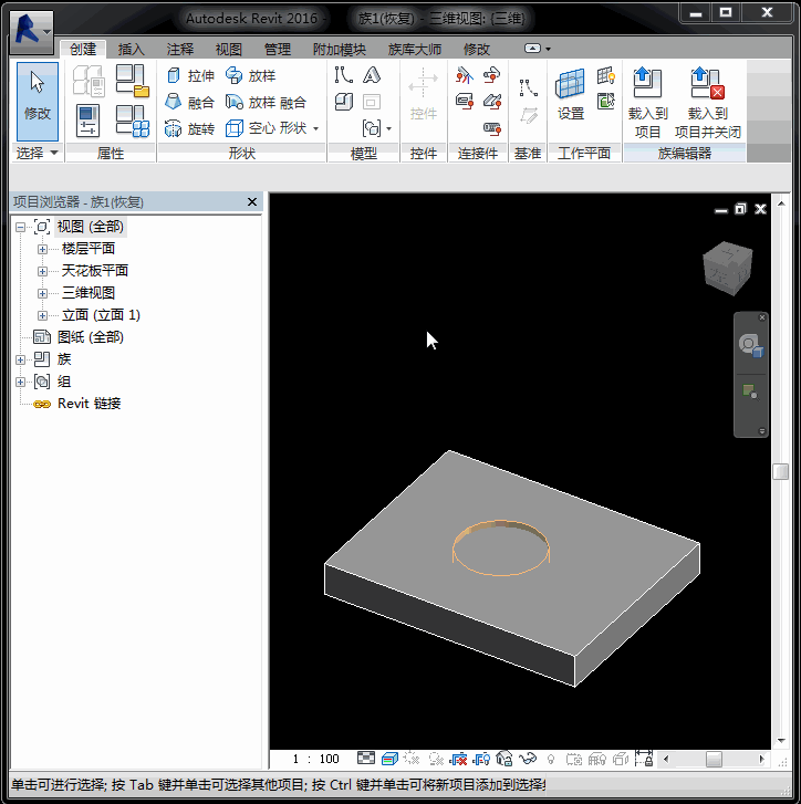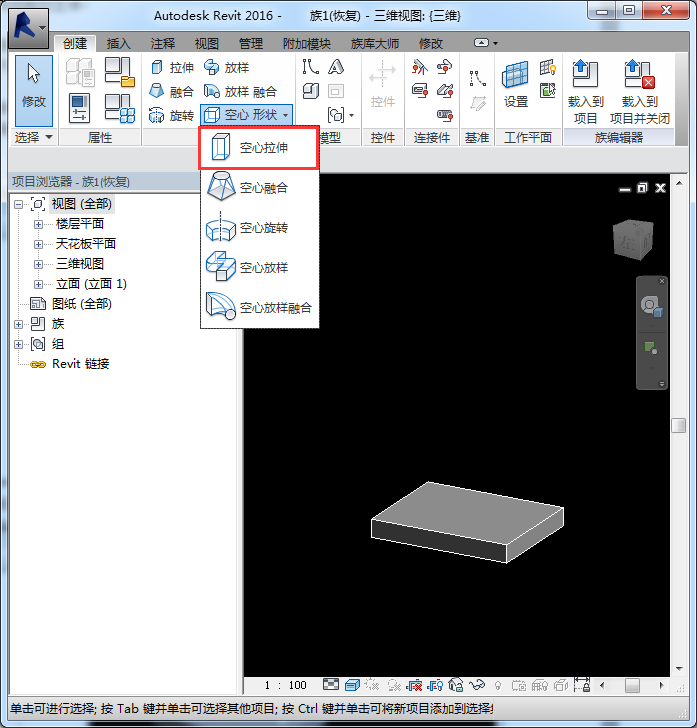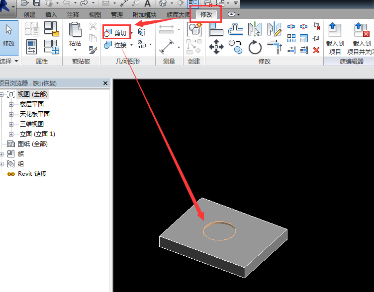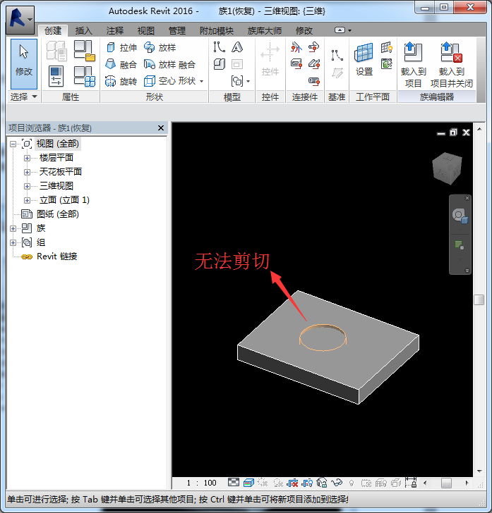 2. 空心拉伸族载入项目中之后无法剪切项目主体