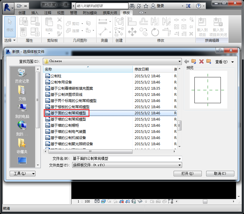 如果想制作一个能够剪切项目中主体的空心剪切族只要在新建族时选择【基于面的公制常规模型】就可以了