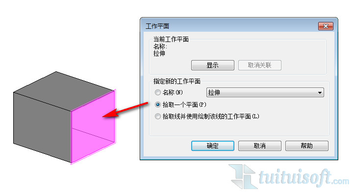 3、接着在这个面上用拉伸命令创建斜墙轮廓并进行拉伸