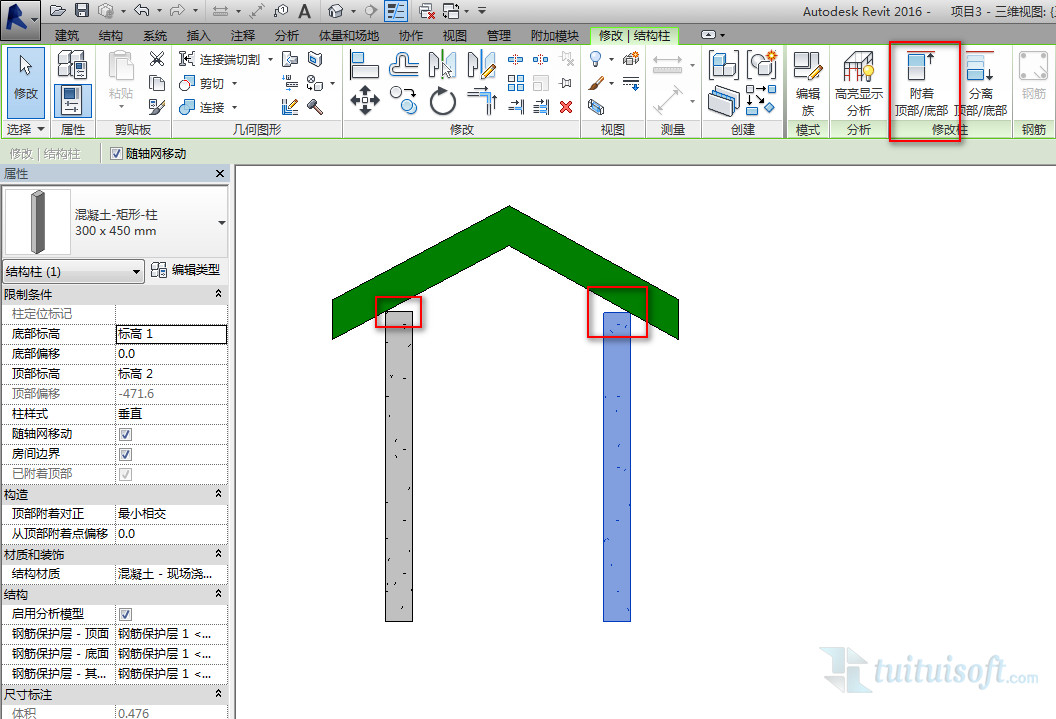 在建模过程中呢,COCO画完图发现 咦,柱子怎么不能自动连接屋顶呢?