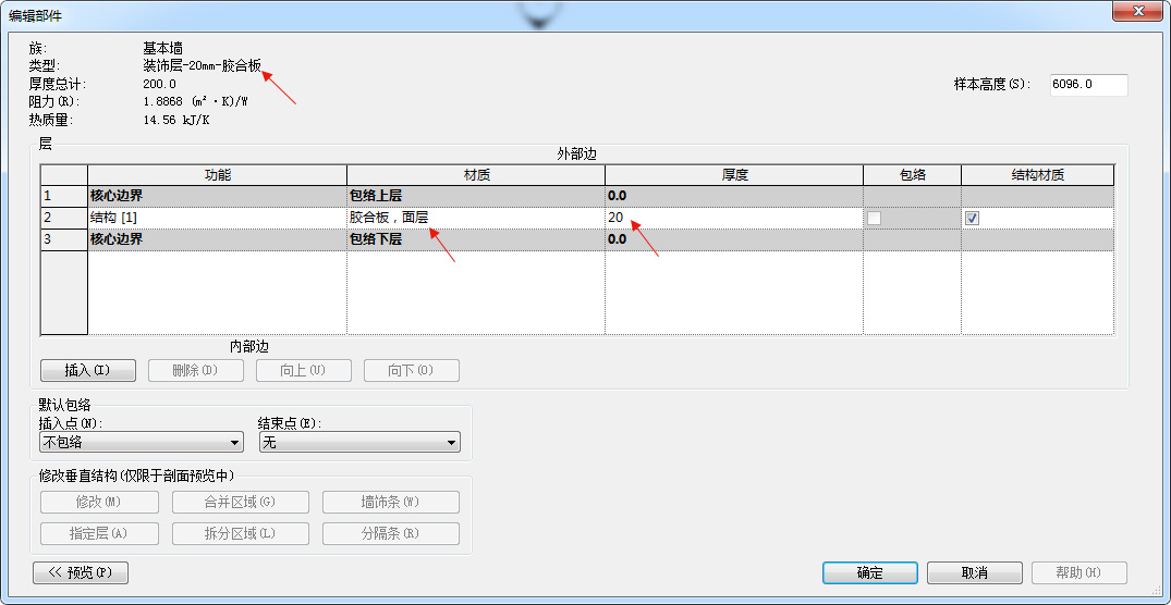 建筑墙→编辑类型→修改名称、厚度及材质→完成