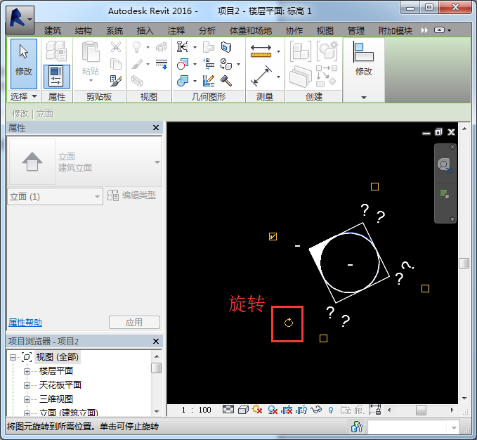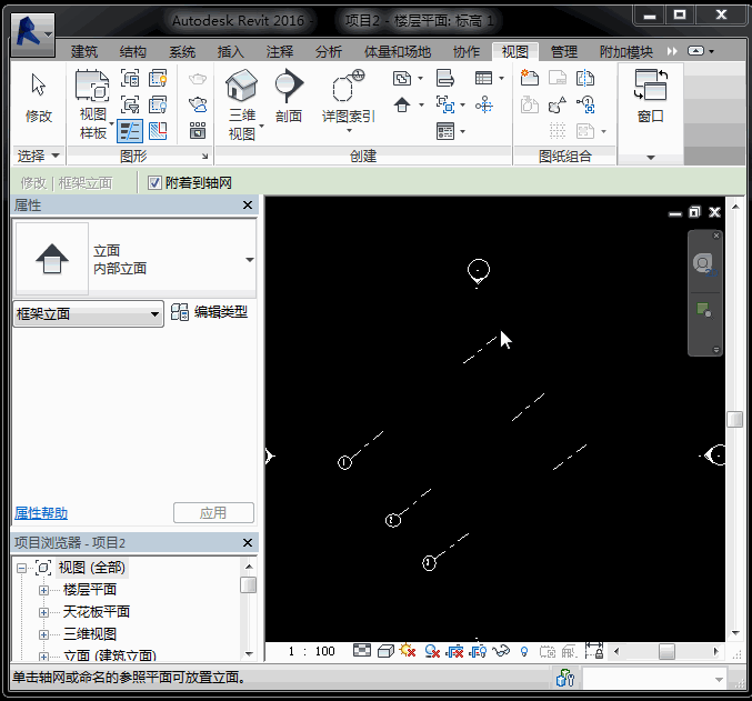 在没有参照物参照面或者参照线的情况下,可以选择立面进行立面图的创建,之后再进 行方向的调整