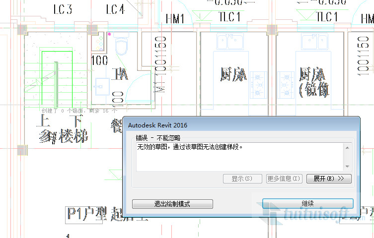然后我就在revit里面画呗,但是 为什么中间的那三层画不出来!!