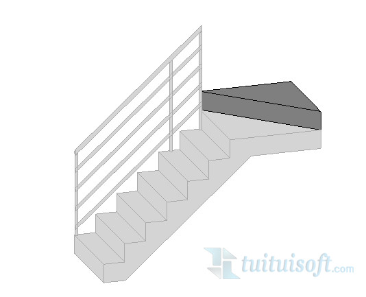 我们先用梯段画出一跑楼梯和一个三角形的平台,画出来是这样。