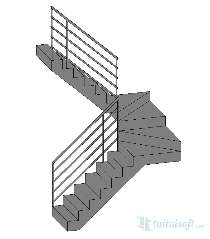 最近我建模的时候遇到了一个从没画过的楼梯,大体是长这样的。