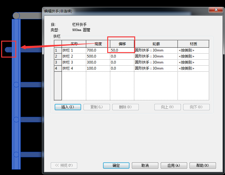 偏移:指的是栏杆距离竖向栏杆中心的距离