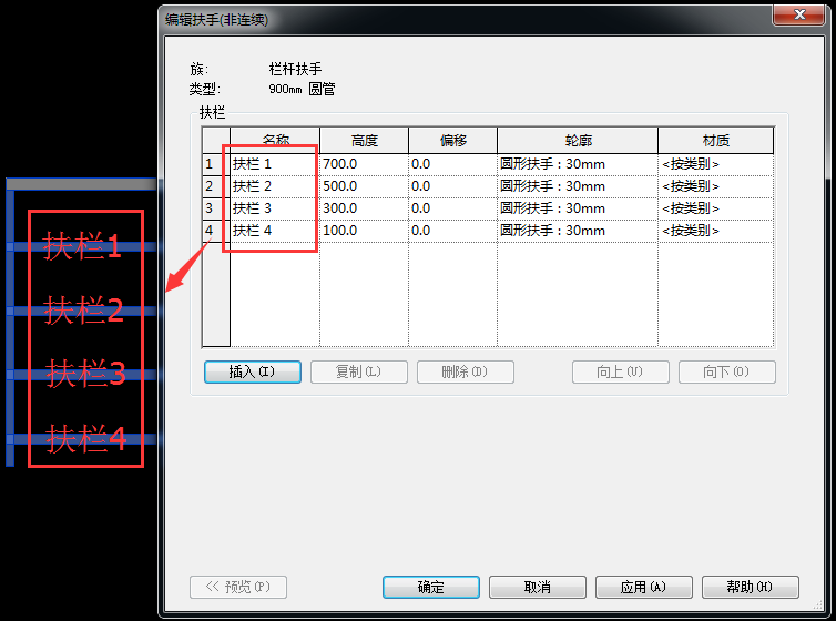 扶栏1、2、3、4指的是从上往下数第二根栏杆开始