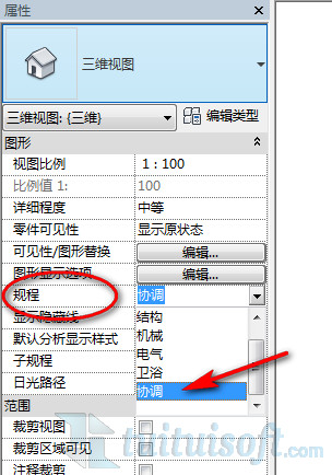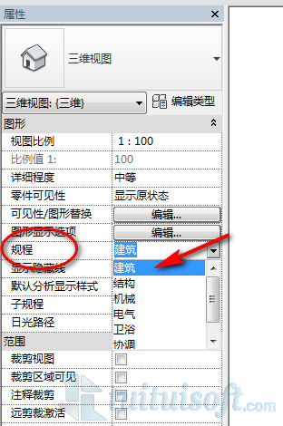 在实例属性面板中找到“规程”这一栏,将“机械”改为“建筑”or“协调”即可!