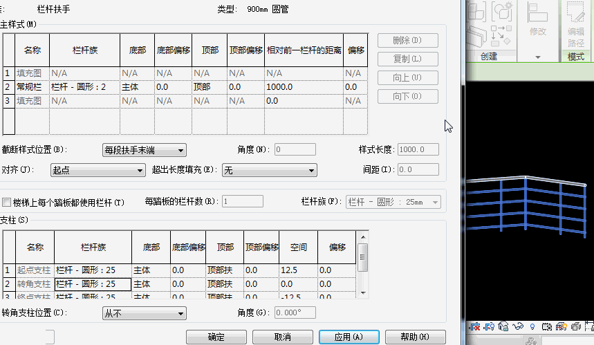 顶部和顶部偏移:用来控制常规栏杆的长度以及顶部的位置
