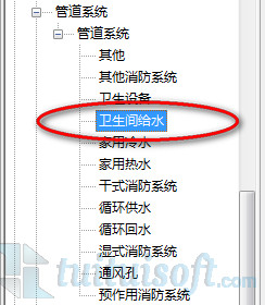 ③这时候就能在实例属性面板中选择“卫生间给水”系统类型了