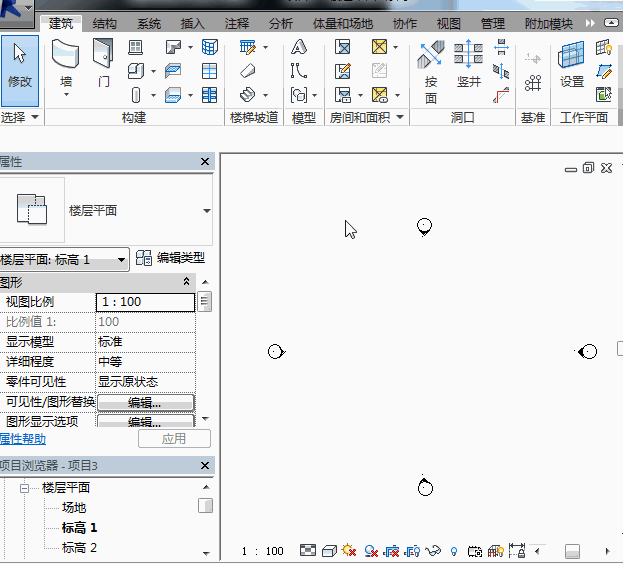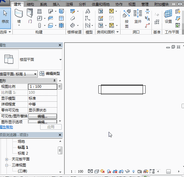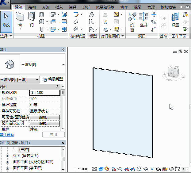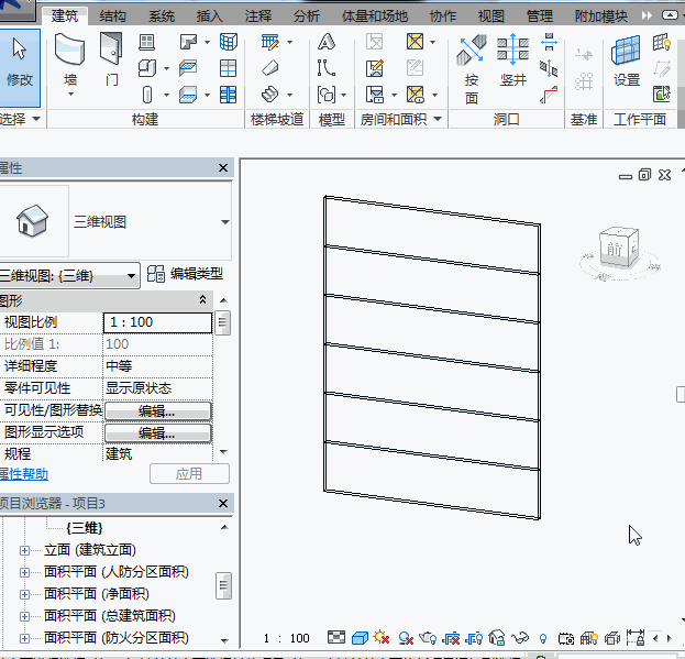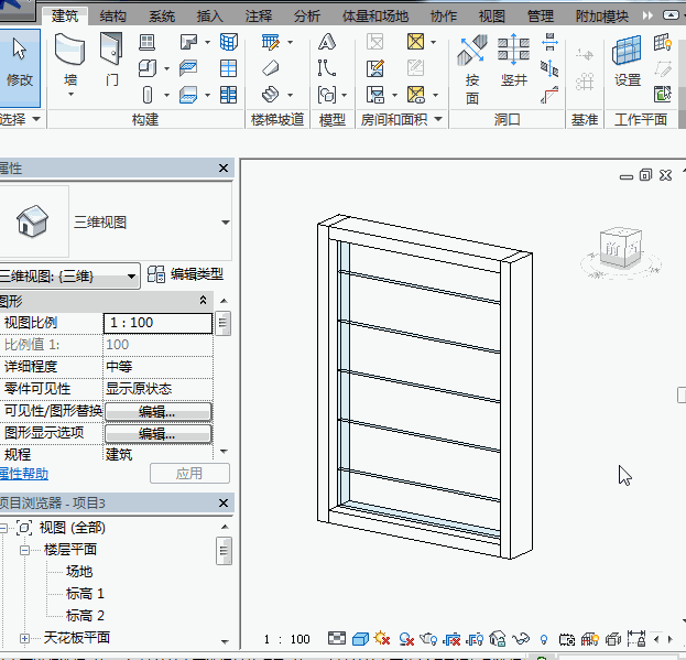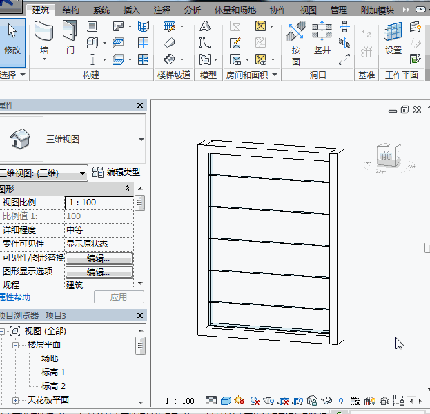 接着,新建一个项目,并创建一个幕墙,幕墙的规格与需要创建的百叶窗的规格一致