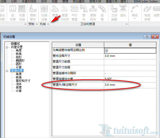 在管道设置里可以看到“管道升/降注释尺寸”一栏
