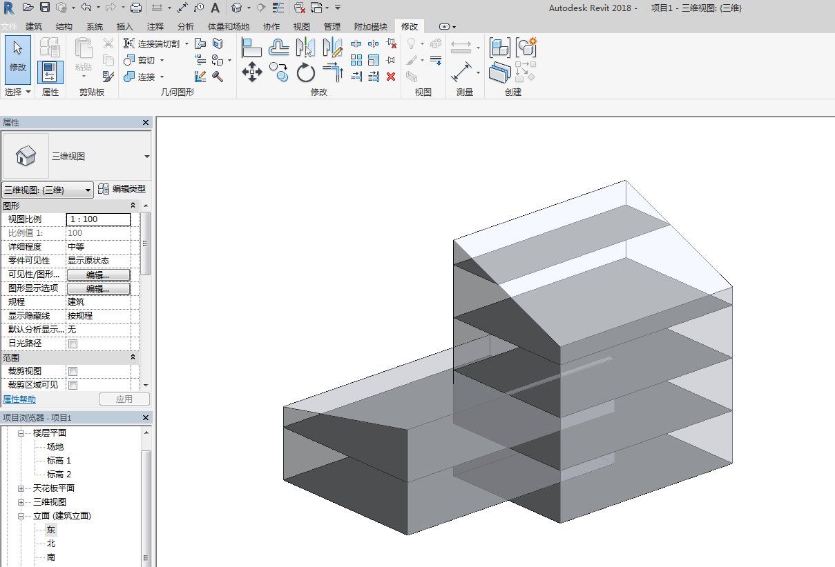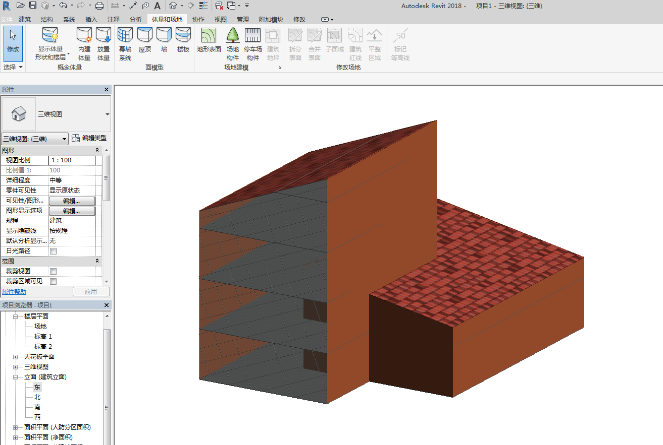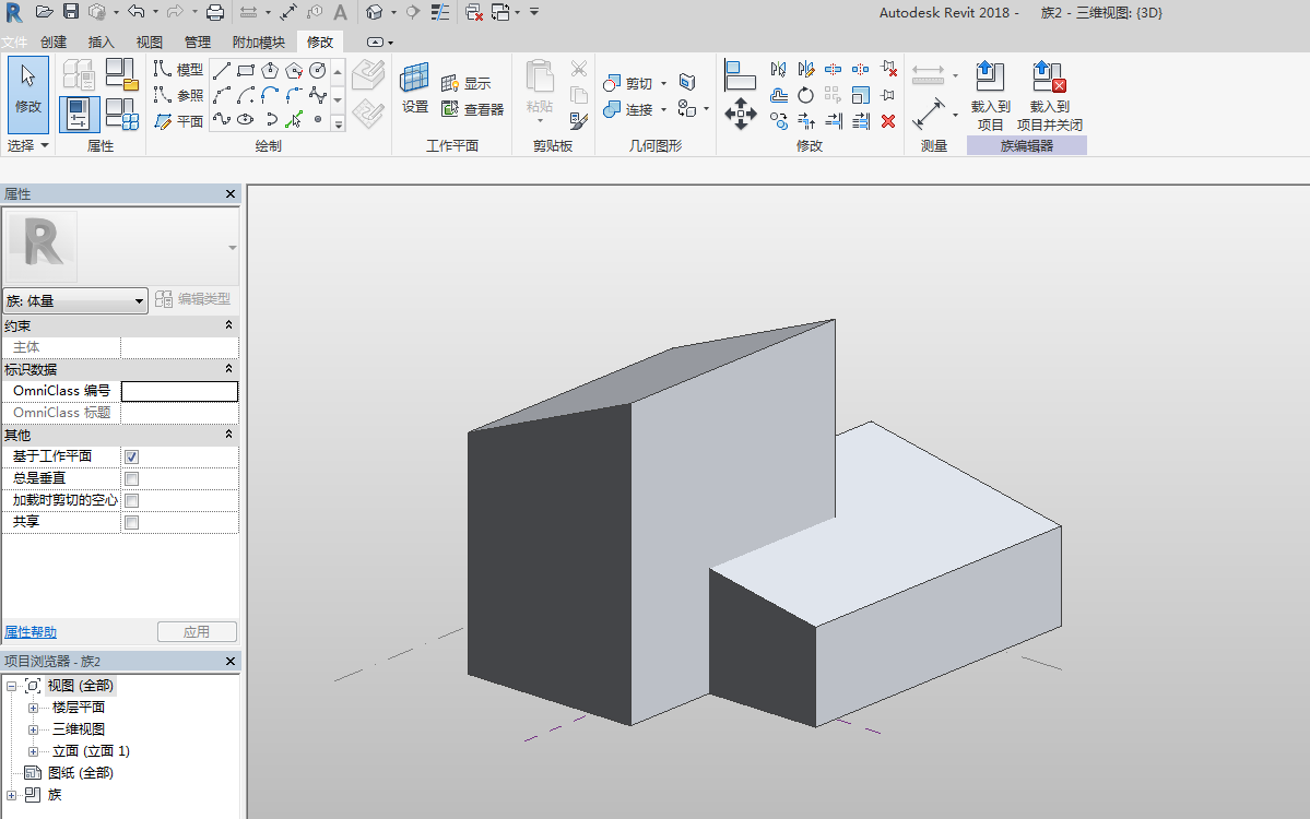 作为示例,我们创建了如下一个建筑体量,体量完成后将其导入到新的项目文件中