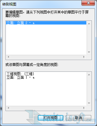 点击该命令,这时候软件就会弹出窗口让你切换到与墙体平行的视图,这个时候,就可以选择我们之前添加的立面。
