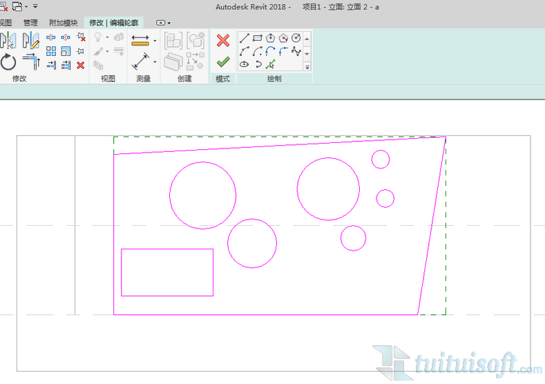 进入编辑模式后,就可以把四边形的规则形体修改成我们所需要的立面造型,可以是在墙体中添加洞口,也可以在修改整个墙体的形状