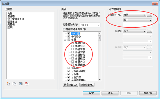 3、添加过滤器!在“可见性/图形替换”中添加一个过滤器,这里需要注意的是要将+号里面的类别取消勾选,不然的话过滤条件就无法选择参数!