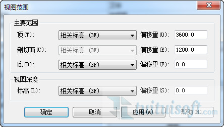 点击视图范围的编辑即会出现关于试图范围的数据,这时候只需将该数据范围改为我们所需要的数据范围就可以。在这里只需要将我们主要范围的顶设置成大于等于4000的即可在视图中见到我们布置的散流器模型。
