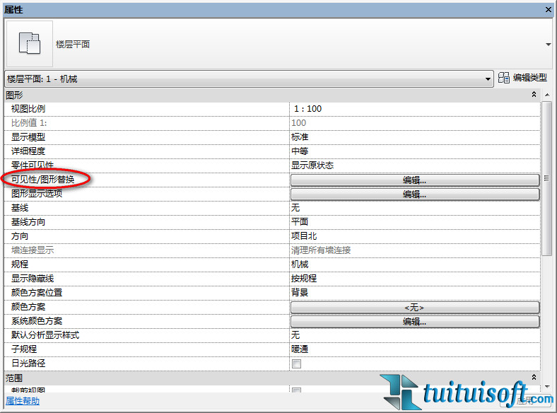 Revit的可视性通过控制我们的属性面板中的可见性来实现的。