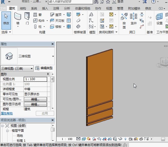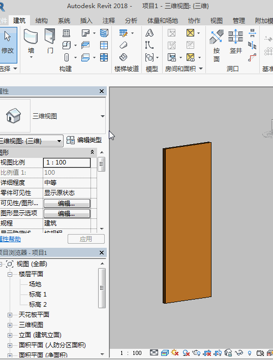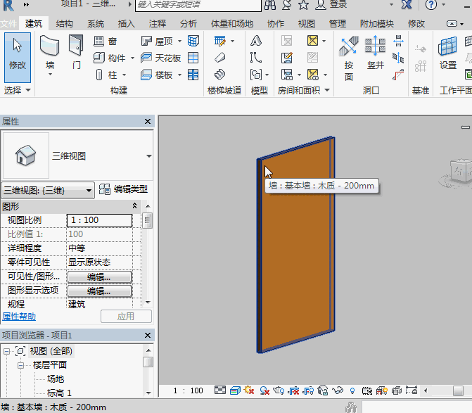 1. 任意绘制一面墙,进入编辑类型进行结构材质的修改