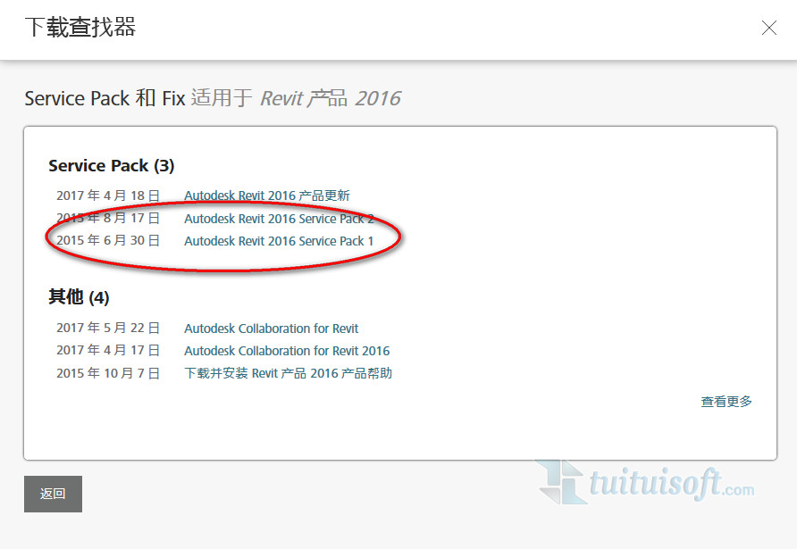 4、在弹出的下载查找器选择“”Service Pack 和Fix“”