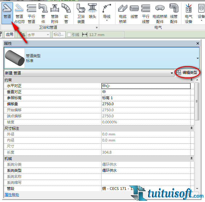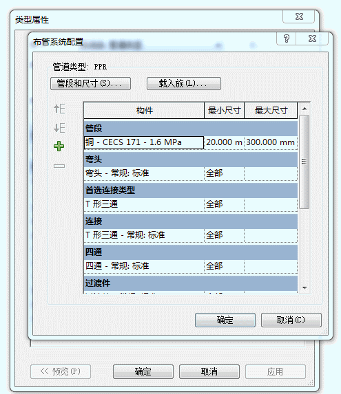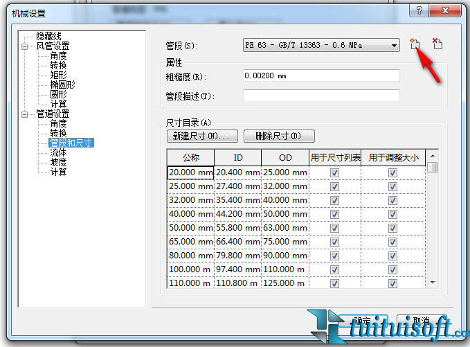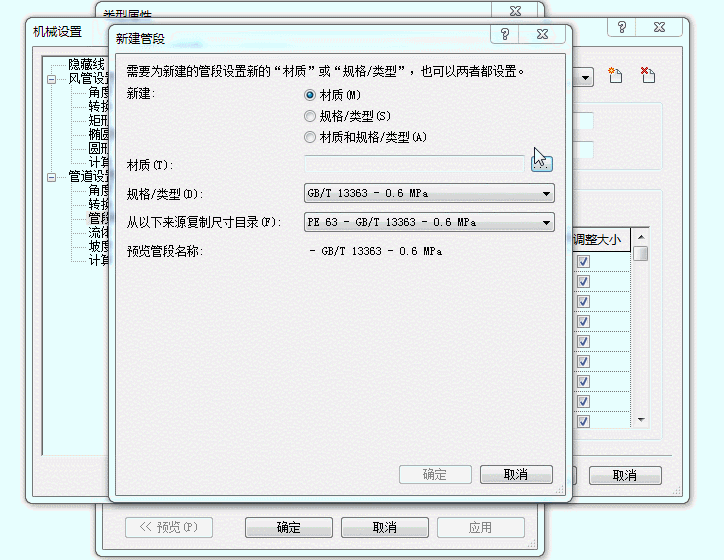 通过编辑布管系统配置中的管段与尺寸来新建管段。