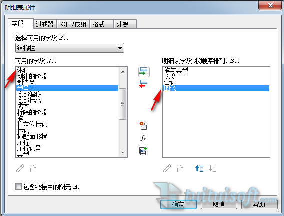 在明细表中的“可用字段”里选择相应的参数,在明细表字段里可以选择“图像”或“类型图像”(两者有差别)参数: