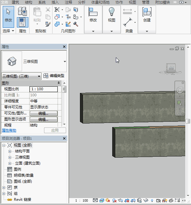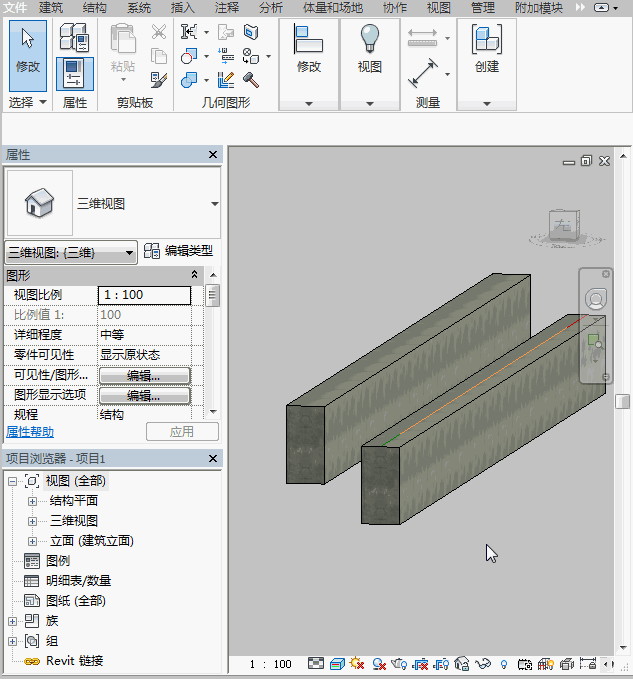 而支撑不但能修改起始点的标高,还能修改起始点附着的高程以及附着位置,为了能让大家更容易看懂,我绘制两根作为确定支撑起始的梁,并将支撑修改为与梁不同的梁族