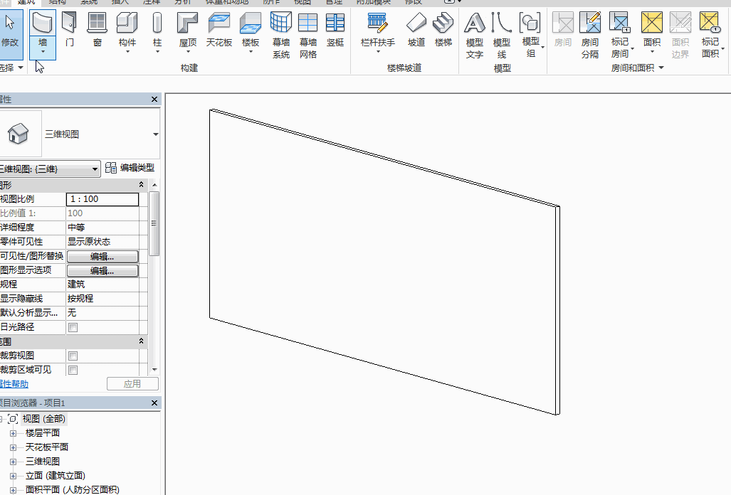 打开Revit,新建一个项目,在项目中绘制一道墙体,由于墙饰条的添加只能在立面或三维视图中添加,让我们一起切换到三维视图中,从墙命令的下拉列表中找到墙饰条工具,墙饰条有竖向和横向之分,移动鼠标到墙面上单击即可以在墙面上添加墙饰条,在单面墙体上需要放置多个墙饰条时需要单击(重新放置墙饰条)才能重新进行放置。
