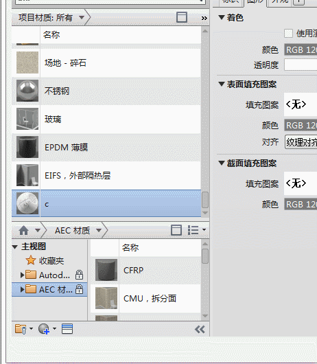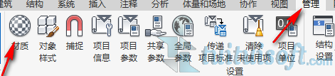 首先新建一个项目样板,在工具栏里点击“管理”工具栏中的“材质”: