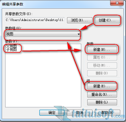第一步:新建共享参数,在管理工具栏里点击“共享参数”先创建共享参数文件接着新建组和参数(父视图、子视图)。