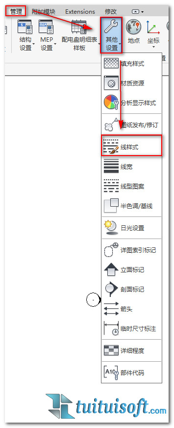 首先,打开【管理】选项卡中的【其他设置】,找到【线样式】