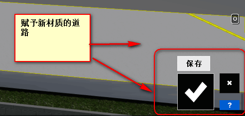 选择沥青材质后,则我们道路的颜色也会跟着改变。确定好材质后点击打钩完成编辑。
