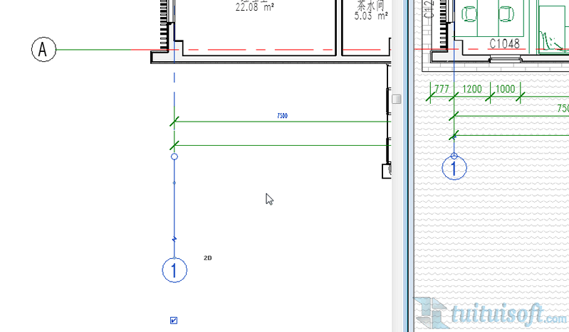 因此,利用轴网的2D显示模式,可以对个别视图中轴网的特殊显示要求进行个性调整,整体图面表达效果更加完整。
