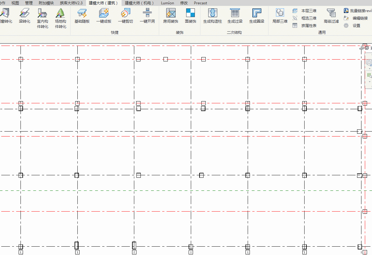 继续接着之前小编的朋友问小编的问题:在Revit在工作视图中,整体视图放大时怎么可以一直显示轴号?这样一直显示轴号,方便在画图时可以很清晰的知道绘制的构件在哪一根轴线上,那么对于这个问题在revit整体的放大视图是无法实现的,那么我们可以通过“红瓦建模大师”的插件来实现revit整体放大视图还是可以看到轴网。那怎么实现呢?