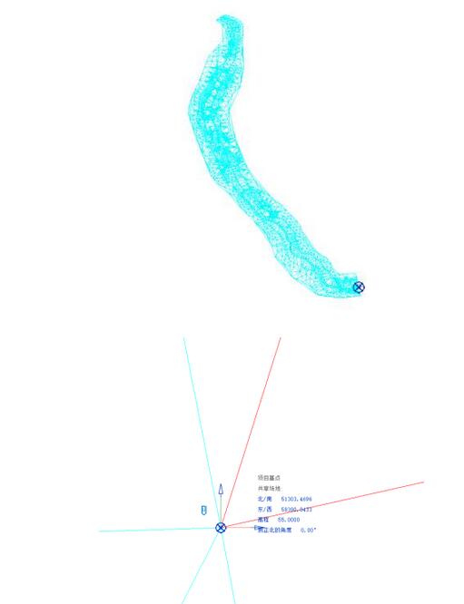 点选发布坐标系后,再根据提示点击已经链接进来的CAD参照图,这样,Revit内部坐标系将发布至链接的DWG文件中,与DWG文件坐标同步。这样,在一段里程桩号的原地貌数据形成的DWG文件导入后,随后测量的另一段基于该坐标系下的DWG文件导入Revit中,可直接在导入时选择该坐标系进行同步。