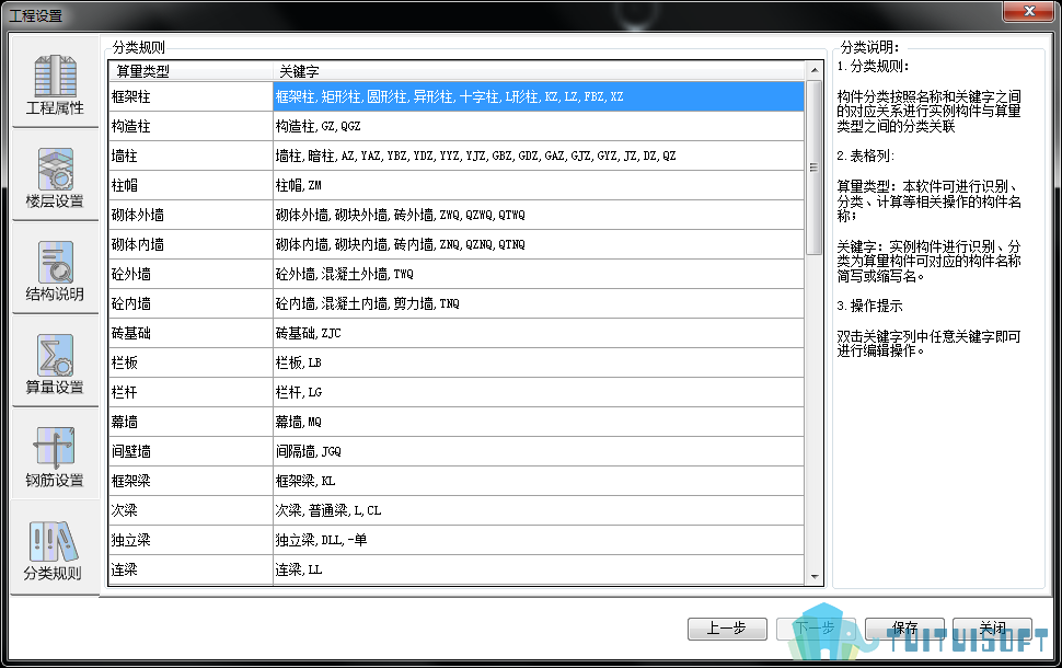 Revit模型的构件具有较高的灵活度,可在多个构件之间进行灵活穿梭,最终计算工程量时采用自动分类,将revit模型构件进行分类,并添加算量类型属性,比如将图形中编号带KZ的柱分类为框架柱,算量时按框架柱的规则进行计算。