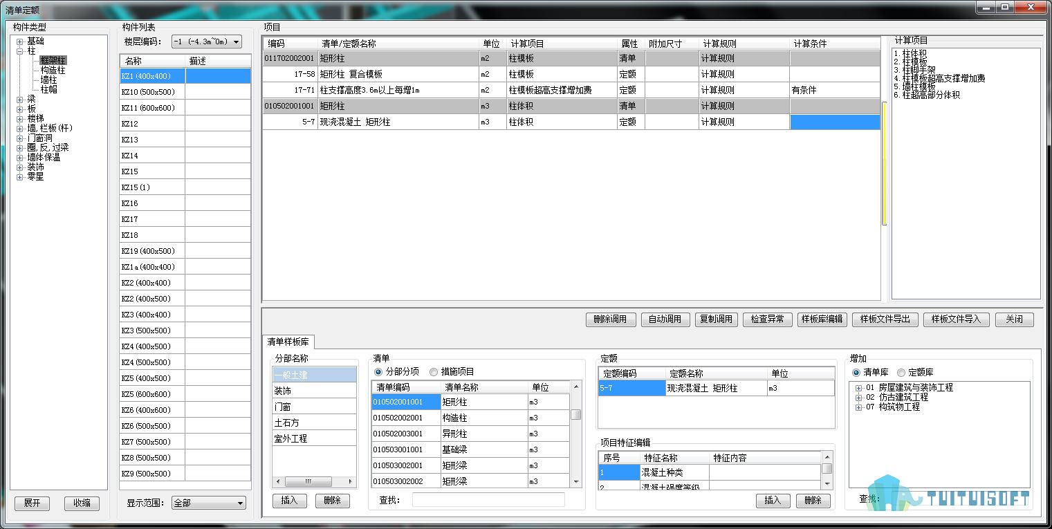 每个构件默认套用常规的清单定额,并可灵活修改,既免去各个构件套用清单定额的繁琐,又可作为学习模板。避免漏项和错项。