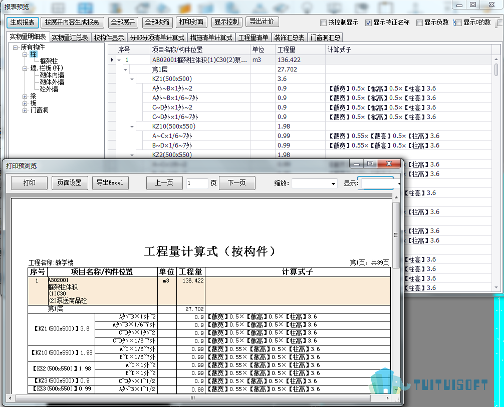 手工模拟计算式,按预算员手算的习惯计算构件,提供计算式可以脱离软件按设计图纸查询,满足对账,同时也满足预结算工程。