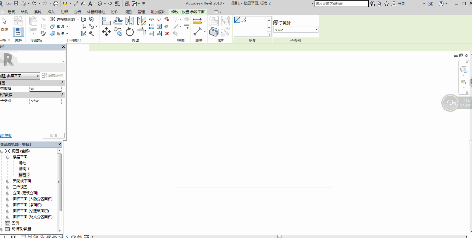 一、先在标高二任意绘制一个平屋顶